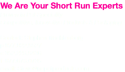 Short run options can be a bonus for any size of business. This option allows you to take advantage of seasonal opportunities, reduces product start up risks and can lower start up costs.